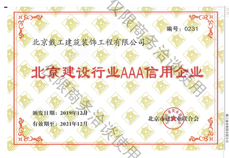 北京建設行業AAA信用企業