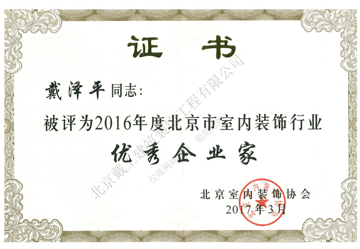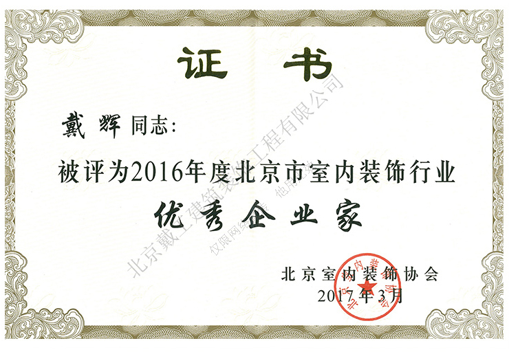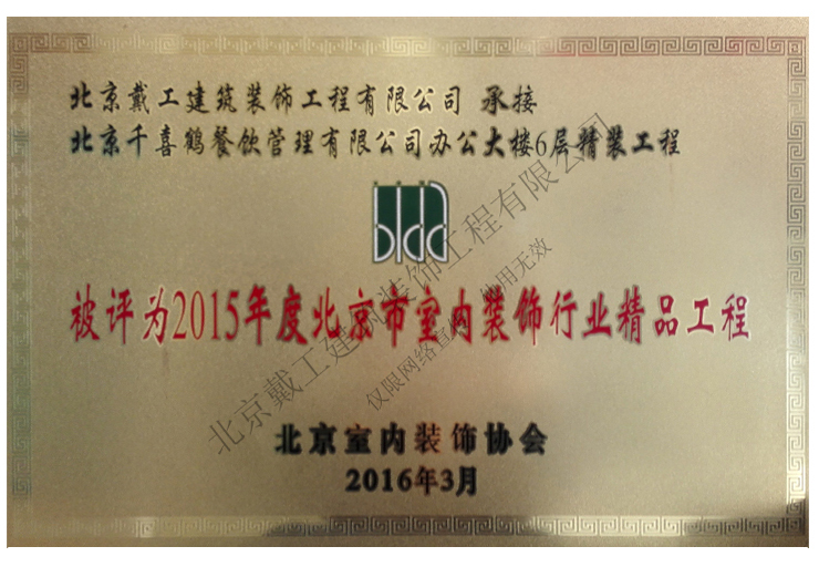 2016年度北京市室內裝飾行業優秀企業